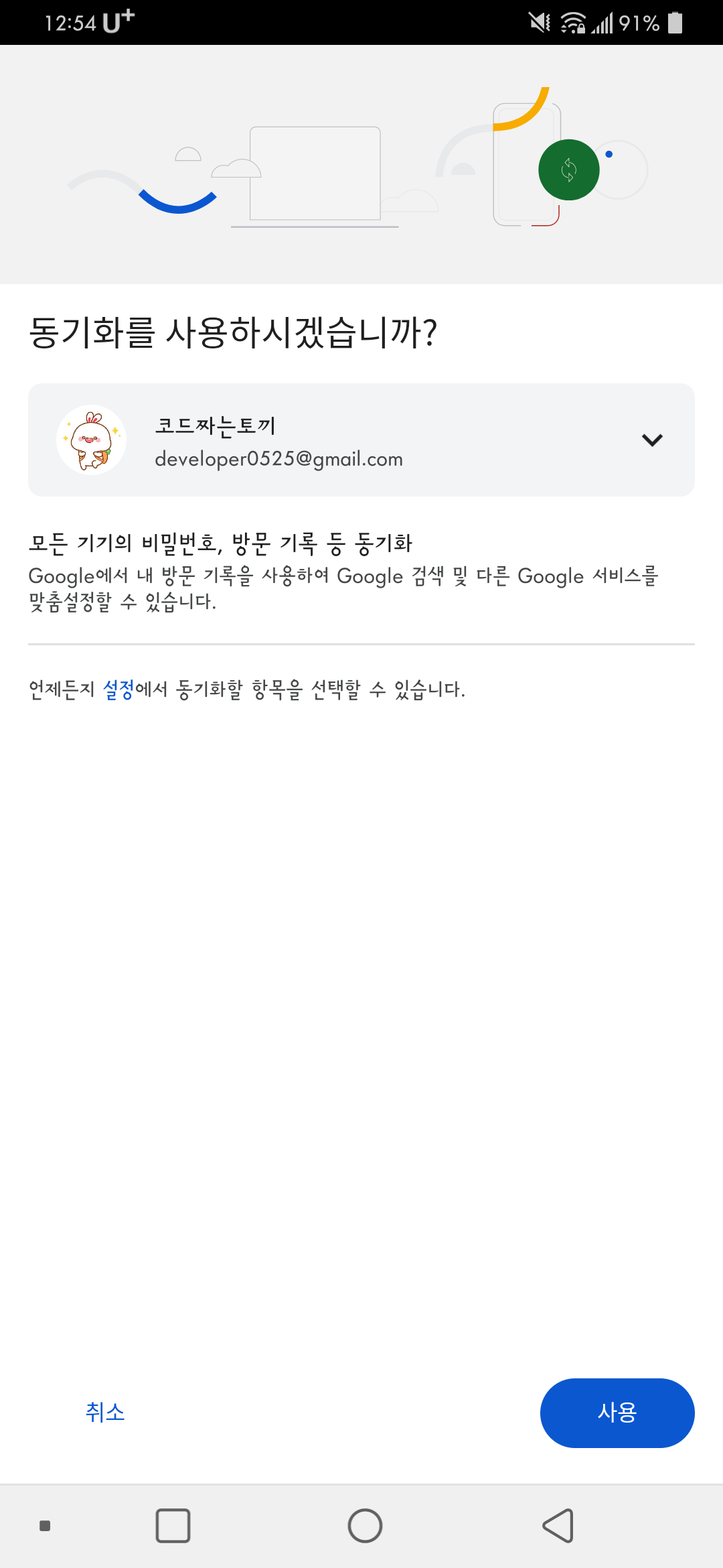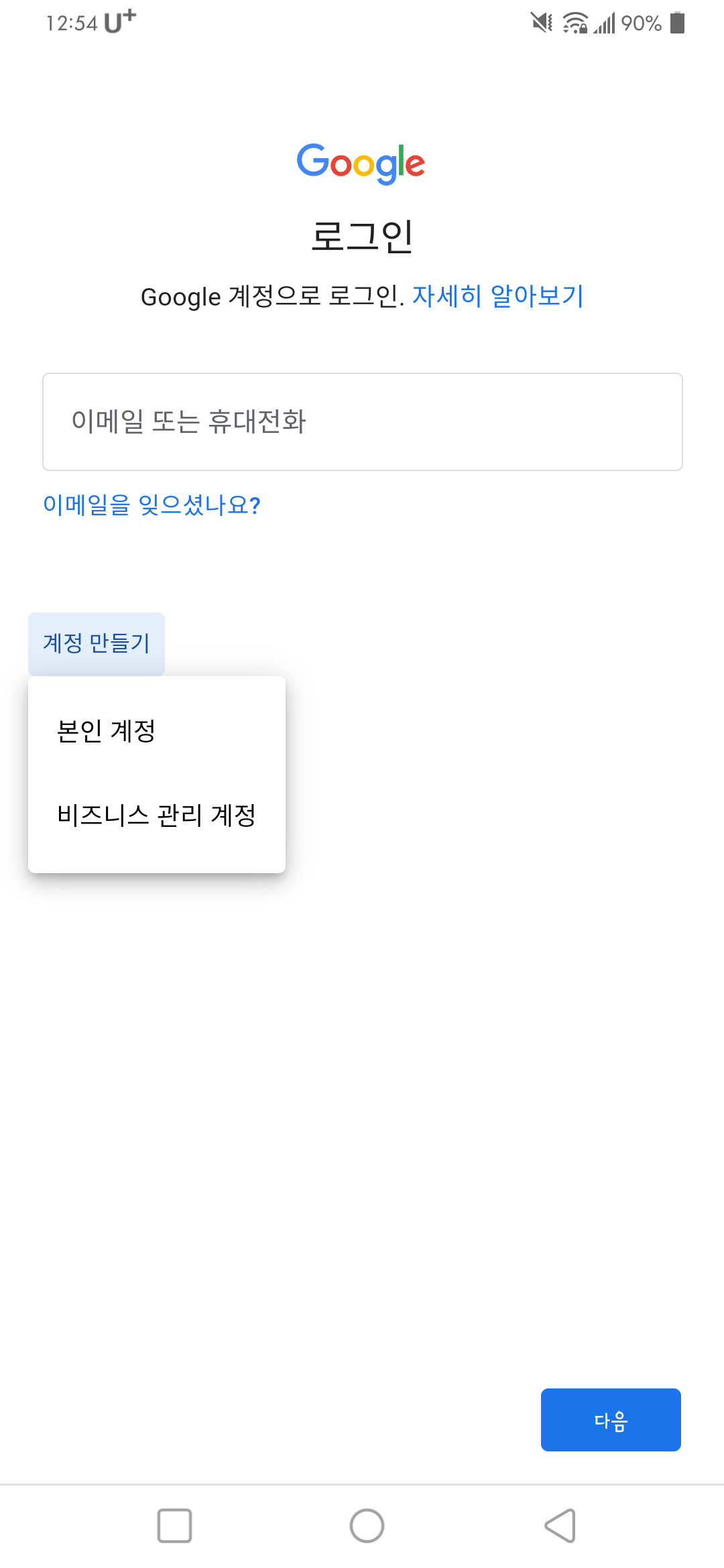 컴퓨터에서 했던 방식과 똑같이 수행합시다. 일단 [계정 만들기] 버튼을 클릭합시다.