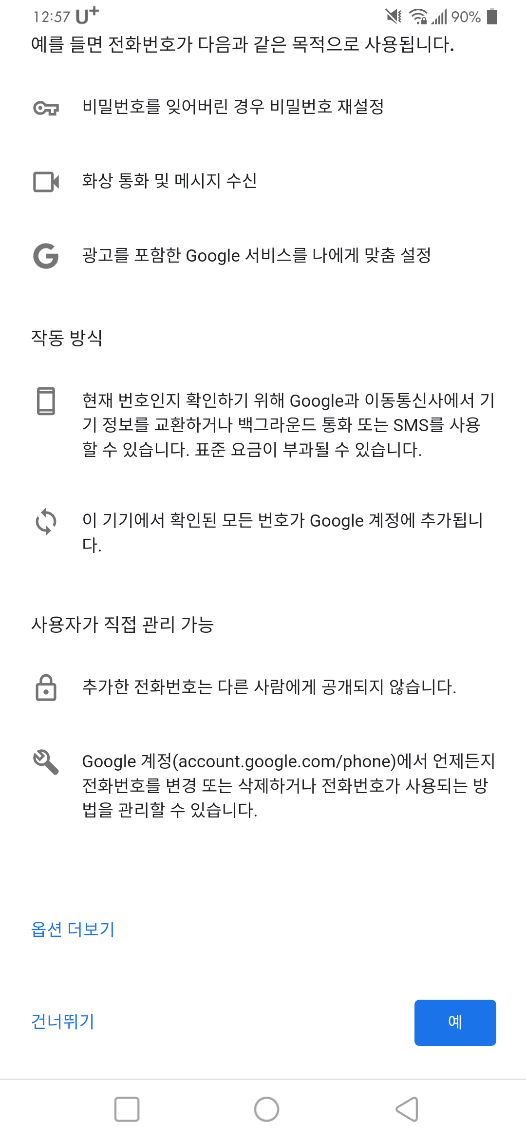 핸드폰은 4~5개의 계정을 생성하자 전화번호 인증을 하라는 창이 뜨기 시작했습니다.